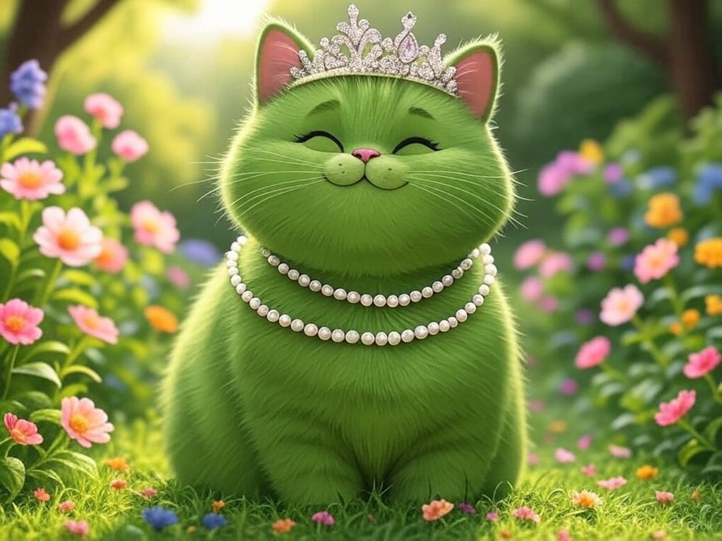 There once was a cat that was green The most curious you've ever seen Tiara and pearls That shimmer and swirl A feline* who lives in my dreams.