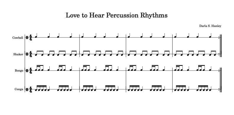 Have all students play the “Love to Hear Percussion Rhythms” and alternate with—individual students—improvising solos for judges to select specific student performers as Gold, Silver, and Bronze winners.*